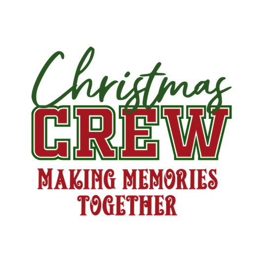 A festive design featuring the phrase "Christmas Crew - Making Memories Together" in cheerful green and red lettering.dtf regular iron