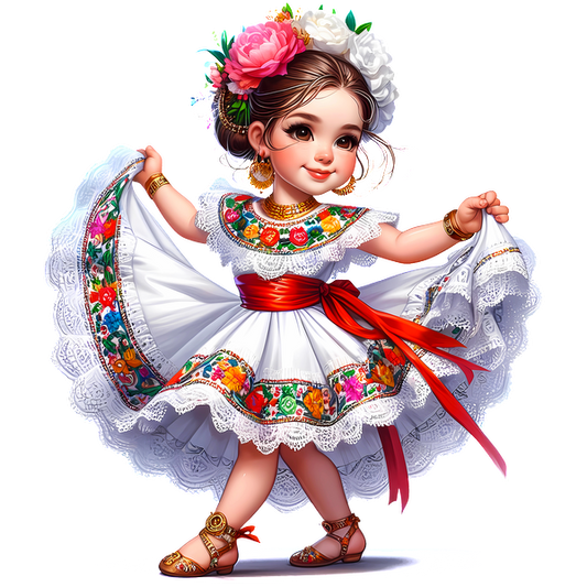 Regular price From £0.75 GBPRegular priceUnit price / per£2.40 GBPSale price From £0.75 GBPA charming girl in a colorful traditional dress, adorned with flowers and holding maracas, embodies festive spirit and culture. dtf transfers