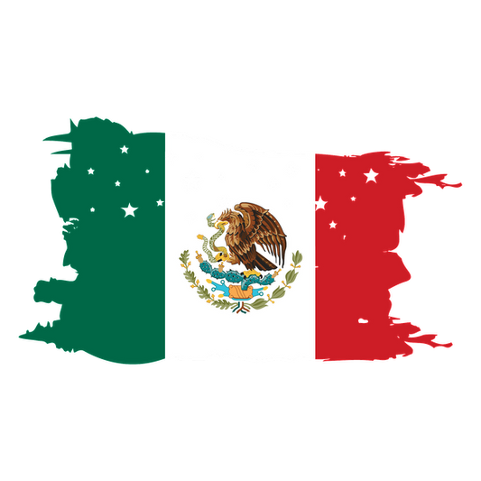 A vibrant depiction of the Mexican flag, featuring green, white, and red vertical stripes with an eagle and serpent emblem at the center.dtf regular iron