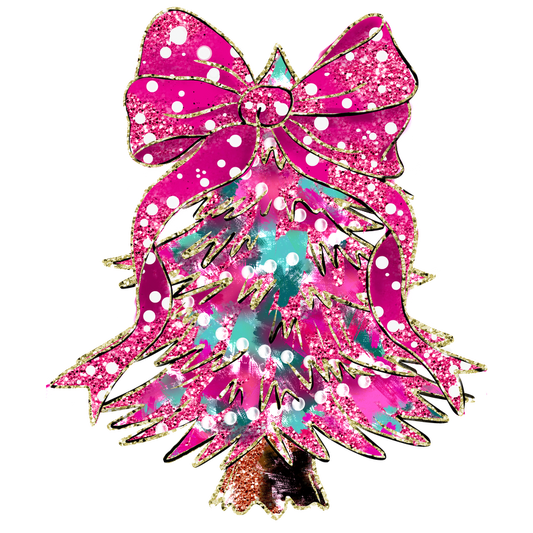 Celebrate the holidays with this vibrant, glittery pink Christmas tree adorned with a big bow and sparkling decorations!DTF Transfers dtf transfers