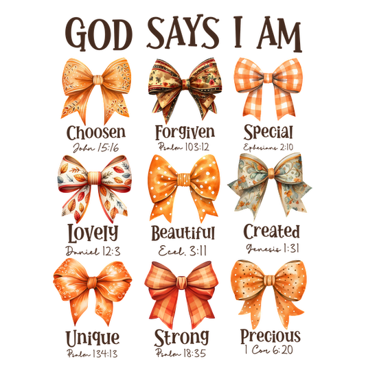 Regular price From £0.75 GBPRegular priceUnit price / per£2.40 GBPSale price From £0.75 GBPA colorful display of bows, each labeled with affirmations like "Chosen," "Forgiven," and "Loved," promoting positive self-identity. heat press transfers