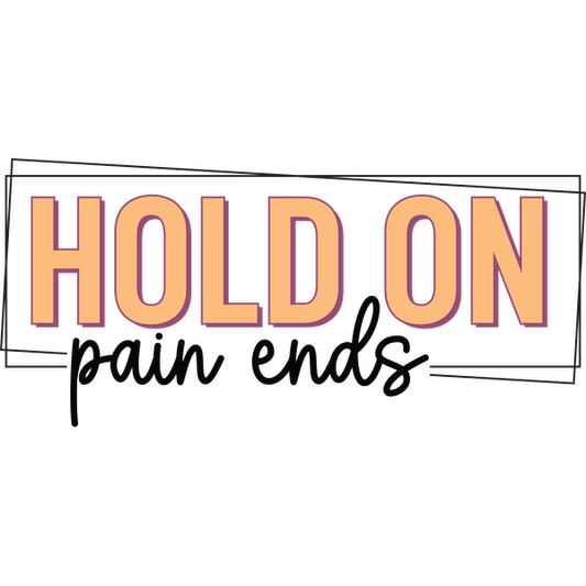 Regular price From £0.75 GBPRegular priceUnit price / per£2.39 GBPSale price From £0.75 GBPA motivational graphic featuring the phrase "HOLD ON, pain ends" in bold, colorful typography, encouraging resilience and hope. dtf transfers