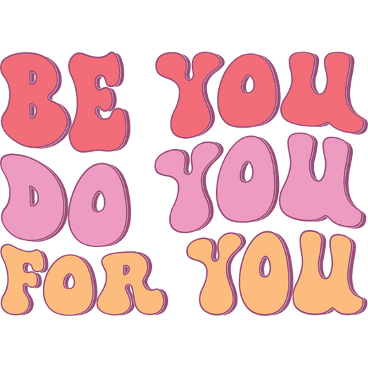 A vibrant, motivational graphic featuring the uplifting message "Be You, Do You, For You" in playful, colorful fonts. dtf transfers