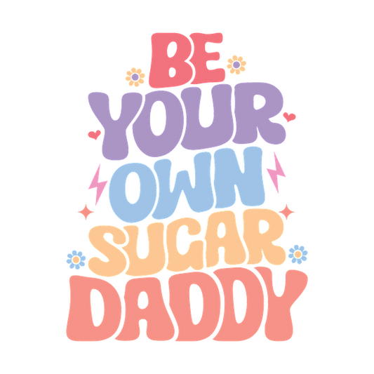 Embrace self-empowerment with this colorful and playful design, encouraging you to "Be Your Own Sugar Daddy!" dtf transfers