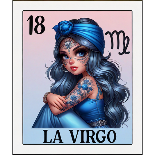 Regular price From £0.75 GBPRegular priceUnit price / per£2.39 GBPSale price From £0.75 GBPA charming illustration of a girl with blue hair, adorned in a blue outfit with intricate tattoos, representing Virgo. dtf prints