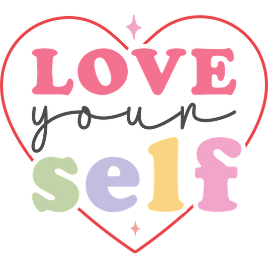 A colorful heart design featuring the empowering message "Love Yourself" in playful, vibrant lettering.dtf regular iron