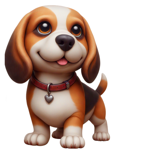 This adorable cartoon beagle features a shiny coat, expressive eyes, and a heart-shaped collar, perfect for any dog lover!