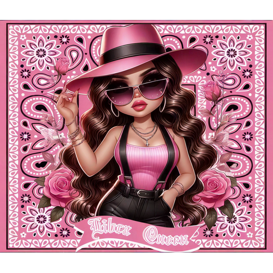 Regular price From £0.75 GBPRegular priceUnit price / per£2.39 GBPSale price From £0.75 GBPA stylish character with long hair, wearing a pink hat and sunglasses, poses confidently against a vibrant floral backdrop. dtf prints