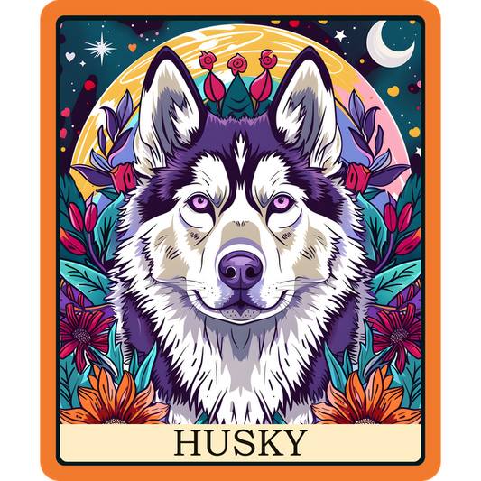 Regular price From £0.74 GBPRegular priceUnit price / per£2.38 GBPSale price From £0.74 GBPColorful illustrated portrait of a husky surrounded by vibrant flowers, showcasing its striking features and expressive eyes. heat press transfers
