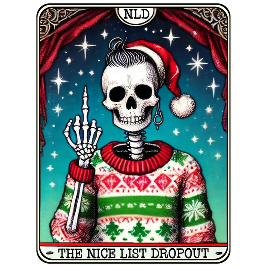 Regular price From £0.74 GBPRegular priceUnit price / per£2.38 GBPSale price From £0.74 GBPA festive skeleton in a colorful Christmas sweater and Santa hat gives a playful gesture, embodying a quirky holiday spirit. heat press transfers
