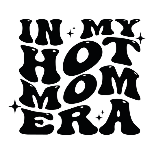 Bold and playful text design that declares "IN MY HOT MOM ERA," capturing a fun and confident spirit. heat press transfers