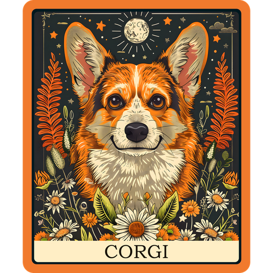 Regular price From £0.74 GBPRegular priceUnit price / per£2.38 GBPSale price From £0.74 GBPA vibrant illustration of a corgi surrounded by flowers and foliage, showcasing its cheerful expression and playful spirit. dtf prints
