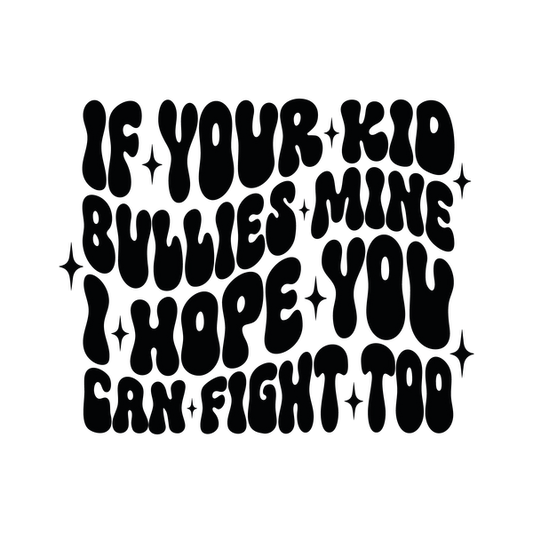A playful and bold statement on child bullying, emphasizing parental accountability with a lighthearted approach. heat press transfers