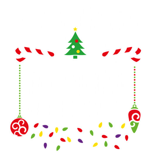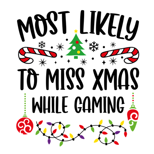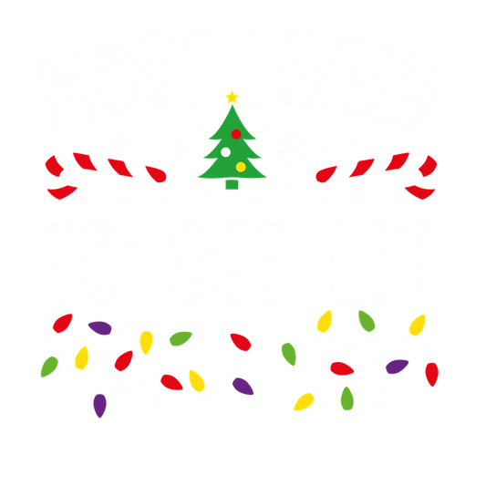 A festive holiday design featuring a "Most Likely" title, decorated with candy canes, a Christmas tree, and colorful lights.DTF Transfers dtf prints