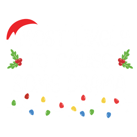 Celebrate the holiday spirit with this fun "Most Likely to Cause Some Drama" graphic, featuring festive lights and holly accents!DTF Transfers dtf prints