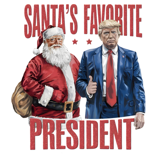 A fun graphic featuring a Santa and a businessman, labeled "Santa's Favorite President," blending holiday cheer with a playful political theme.DTF Transfersdtf regular iron dtf transfers