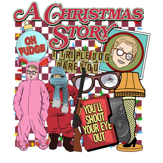 Regular price From £0.74 GBPRegular priceUnit price / per£2.37 GBPSale price From £0.74 GBPA colorful, whimsical graphic inspired by "A Christmas Story," featuring iconic quotes and characters in festive attire.DTF Transfers dtf transfersdtf regular iron