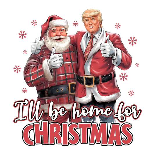 A festive illustration featuring Santa Claus and a character in a red suit, with the cheerful text "I'll be home for Christmas."DTF Transfers dtf transfers heat press transfers