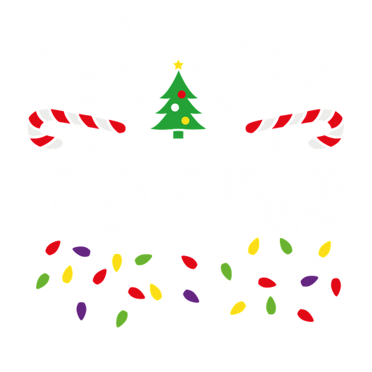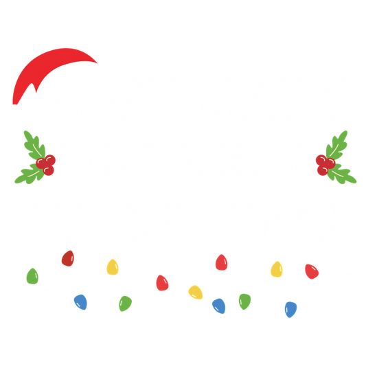 A playful and festive graphic that humorously states "Most Likely to Not Show Up for Christmas," adorned with colorful holiday decorations.DTF Transfersdtf regular iron heat press transfers