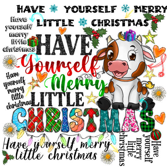 Regular price From £0.74 GBPRegular priceUnit price / per£2.37 GBPSale price From £0.74 GBPA cheerful cartoon cow with a gift on its head, surrounded by festive decorations, spreading a "Merry Christmas" message.DTF Transfers dtf prints