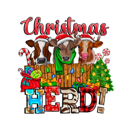 Celebrate the holidays with this festive design featuring cute cows in Santa hats, surrounded by gifts, a tree, and cheerful decorations!DTF Transfersdtf regular irondtf regular iron