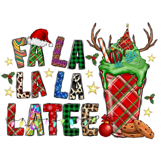 Celebrate the holiday season with this festive design featuring a cheerful latte topped with playful decorations and whimsical patterns!DTF Transfers dtf transfers