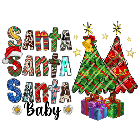 Celebrate the joy of Christmas with colorful "Santa" lettering, festive trees, and vibrant gift boxes adorned with bows!DTF Transfers dtf transfers