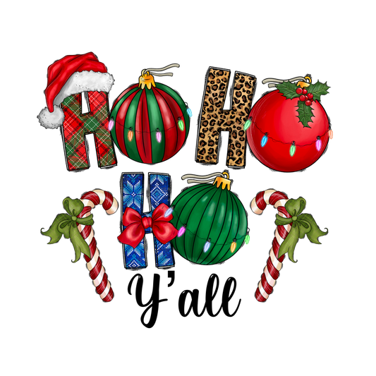 A festive display featuring colorful holiday letters, ornaments, candy canes, and a bow, all celebrating the cheerful spirit of Christmas.DTF Transfers dtf prints