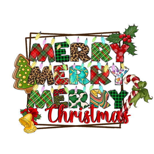 Celebrate the season with this colorful "Merry Christmas" design featuring festive patterns, holiday lights, and cheerful decorations!DTF Transfers dtf prints