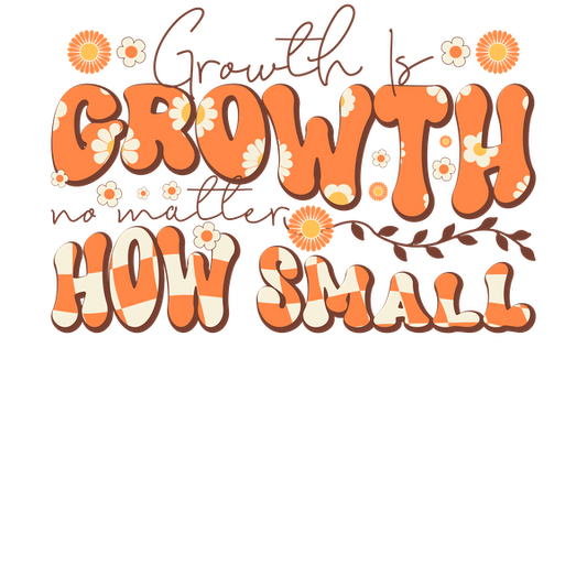 Regular price From £0.75 GBPRegular priceUnit price / per£2.39 GBPSale price From £0.75 GBPA vibrant design featuring the message "Growth is GROWTH no matter how small," adorned with flowers and playful typography. heat press transfers