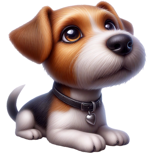 Adorable cartoon beagle puppy with big eyes, a heart-shaped tag, and a soft fur pattern in brown and black.dtf regular iron
