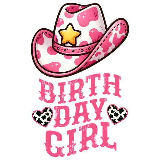 Celebrate with this fun pink and white cowgirl hat design, perfect for a "Birthday Girl" theme! dtf transfers