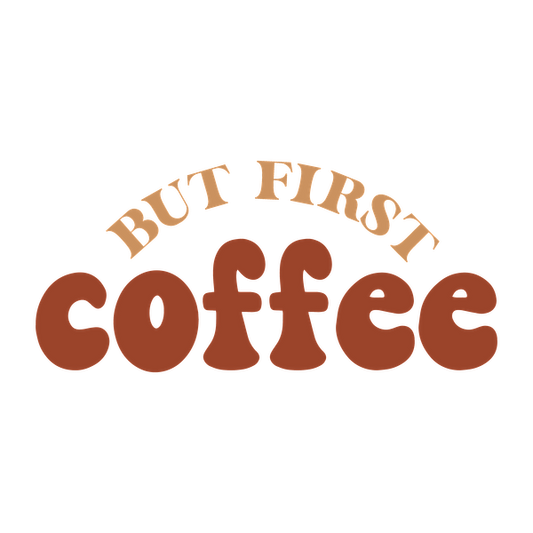 Regular price From £0.75 GBPRegular priceUnit price / per£2.39 GBPSale price From £0.75 GBPA playful graphic featuring the phrase "But First Coffee" in bold, warm-toned lettering, perfect for coffee enthusiasts.dtf regular iron