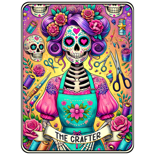 Regular price From £0.75 GBPRegular priceUnit price / per£2.39 GBPSale price From £0.75 GBPA vibrant illustration of a skeleton woman, adorned with flowers and crafting tools, celebrating creativity and the spirit of crafting. dtf prints