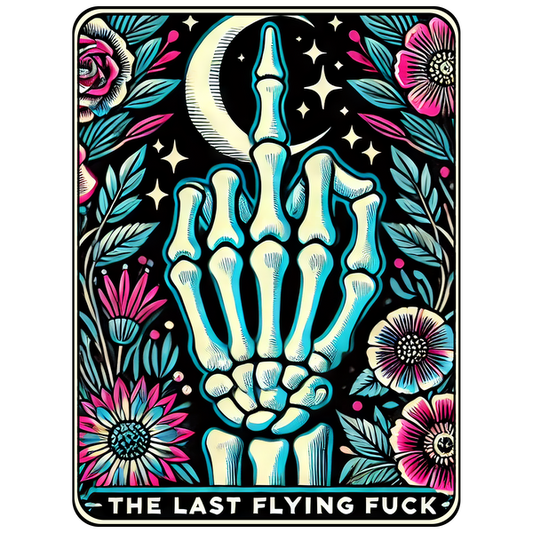 Regular price From £0.75 GBPRegular priceUnit price / per£2.39 GBPSale price From £0.75 GBPA vibrant art piece featuring a skeleton hand making a bold gesture, surrounded by colorful flowers and a crescent moon. dtf prints