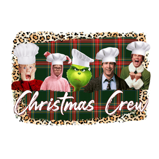 A festive design featuring characters in chef hats on a plaid background, celebrating the holiday spirit as the "Christmas Crew."DTF Transfers dtf transfers dtf prints
