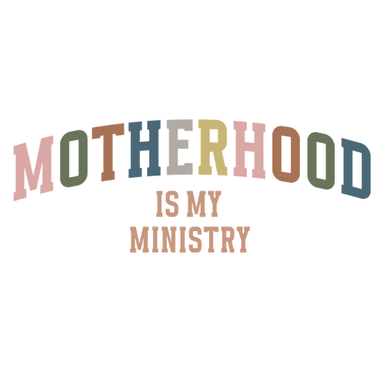 A colorful graphic design proclaiming "Motherhood is My Ministry," celebrating the empowering role of mothers.DTF Transfers