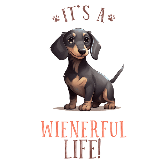 This charming illustration features a playful dachshund with the phrase "It's a Wienerful Life!" below, perfect for dog lovers.DTF Transfers