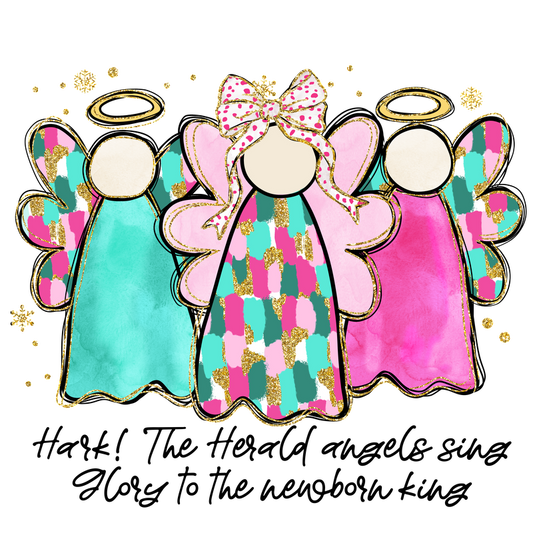 Regular price From £0.75 GBPRegular priceUnit price / per£2.40 GBPSale price From £0.75 GBPThree colorful, whimsical angel figures with adorable wings and bows, featuring bright patterns and a touch of glitter.DTF Transfers