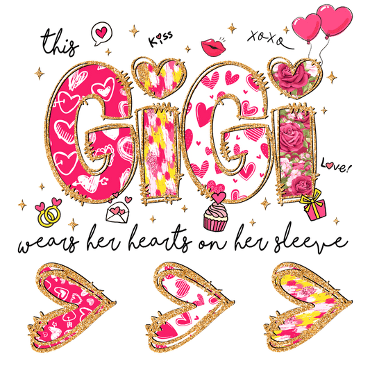 Grandma, Granny, and Gigi shine with hearts, roses, glitter, and love. Bundle DTF Heat transfers