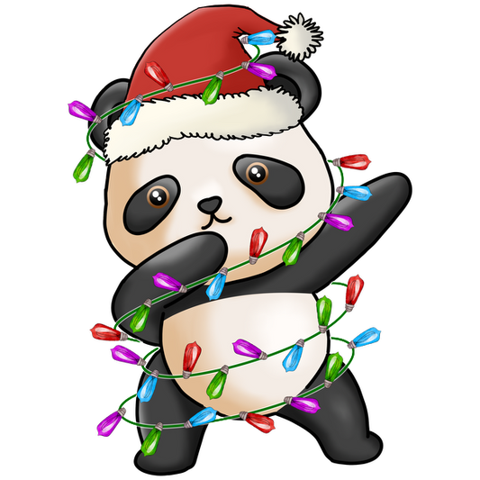 Regular price From £0.75 GBPRegular priceUnit price / per£2.39 GBPSale price From £0.75 GBPA cheerful panda wearing a Santa hat is playfully wrapped in colorful Christmas lights, embodying festive joy and fun. dtf prints