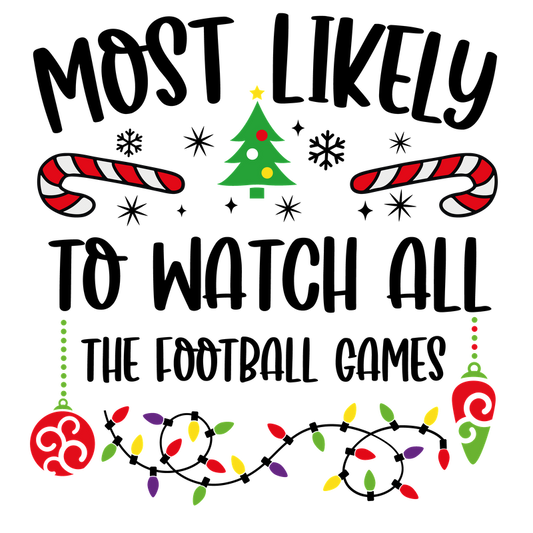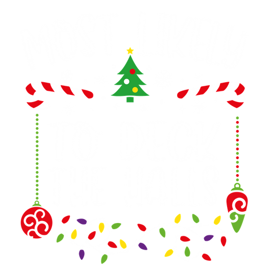 Celebrate the festive spirit with this vibrant design featuring "Most Likely To Deck The Halls," accented by holiday elements.DTF Transfers dtf transfers heat press transfers