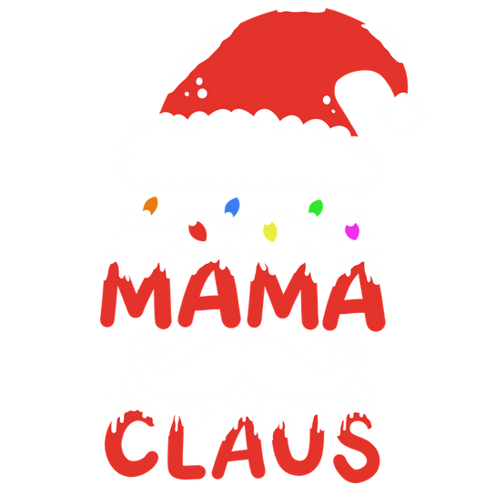 Festive "Mamá Claus" design featuring a red Santa hat, colorful lights, and a cheerful mustache, perfect for holiday fun!DTF Transfers heat press transfers dtf prints