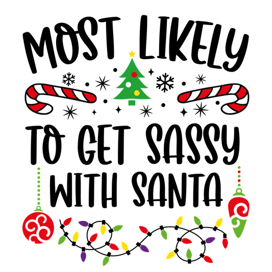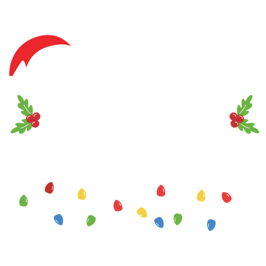Regular price From £0.75 GBPRegular priceUnit price / per£2.39 GBPSale price From £0.75 GBPFestive design featuring the playful phrase "Most Likely to Bribe Santa with Cookies," adorned with holly and colorful lights.DTF Transfers dtf prints