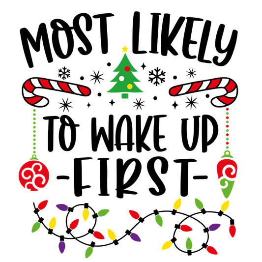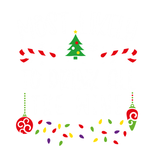 Festive and fun, this cheerful graphic features colorful holiday elements and humorously declares, "Most Likely to Drink All the Wine!"DTF Transfers heat press transfers dtf transfers