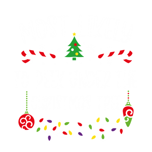 Celebrate the holiday spirit with this playful design featuring festive elements and the words "Most Likely to Peek Under the Christmas Tree."DTF Transfers dtf prints