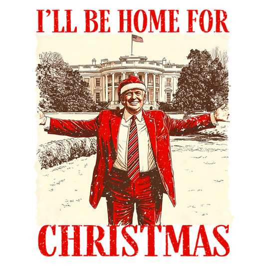 A festive design featuring a character in a red suit and Santa hat, with the caption "I'll be home for Christmas."DTF Transfers dtf transfers dtf prints