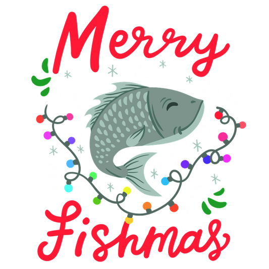 Celebrate the festive season with a playful "Merry Fishmas" design featuring a cheerful fish surrounded by colorful Christmas lights!DTF Transfers dtf transfers dtf prints