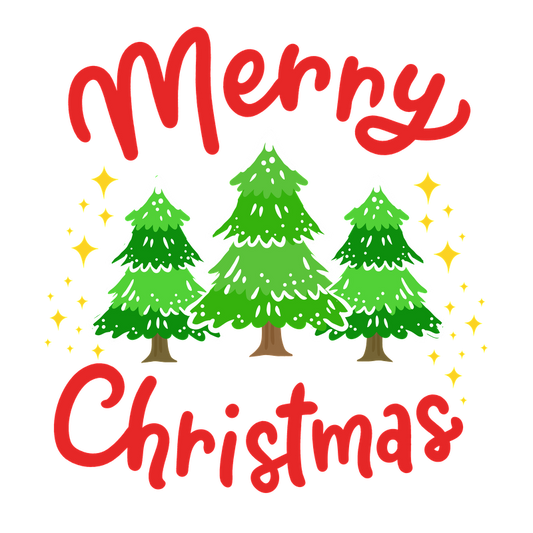 Celebrate the season with this cheerful "Merry Christmas" design featuring vibrant green trees and festive sparkles!DTF Transfers dtf prints