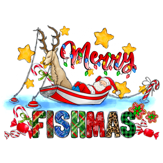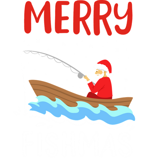 Celebrate the holiday spirit with this whimsical "Merry Fishmas" design featuring Santa fishing on snowy waters!DTF Transfers heat press transfers heat press transfers